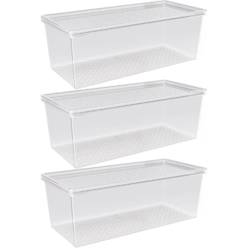 Kit 3 Organizadores de Geladeira com Tampa 4,5L Frutas Legumes Multiuso Transparente UZ.