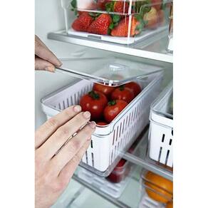 Com o organizador de geladeira clear fresh com cesto , você terá organização e irá conservar e manter o frescor de seus alimentos por mais tempo, a tampa com ventilação ajustável mantém o nível de umidade ideal para cada tipo de alimento, mantendo-os frescos por mais tempo. Possui um cesto de drenagem que impede que a umidade acumulada se mantenha no alimento, evitando o murchamento e deterioração precoce.
