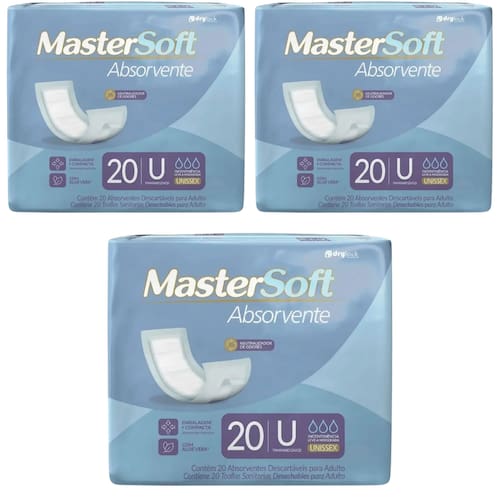 Absorvente Geriátrico Dry Master Soft Unissex 3 Pacotes com 20 Unidades Cada Totalizando 60 Unidades