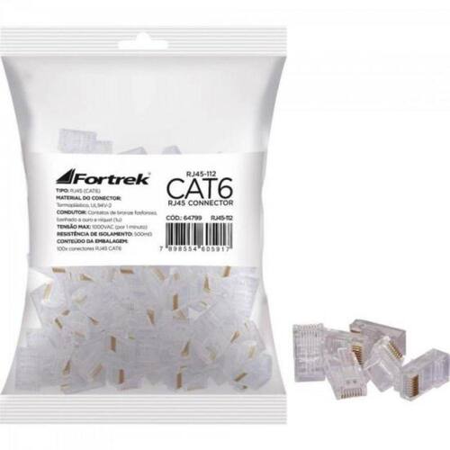 Kit 3 Pacotes Conector RJ45 Cat6 Fortrek com 300 Peças