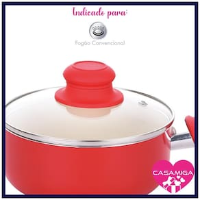 - Espessura: 1.8mm - Material: Alumínio com revestimento cerâmico - Marca: Class Home - Cor: Vermelho - Conteúdo: 3 Panelas