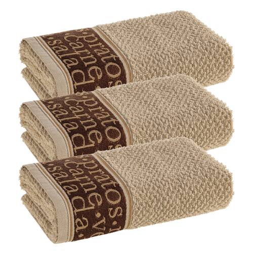 Kit 3 Panos de Prato/Copa Karsten com 340g/m² retangular medindo 46x65cm e com tecido 97% algodão 3% poliéster.