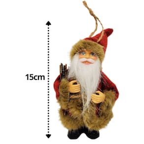 -01 Papai Noel Decor 15cm Roupa Casaco Vermelho e Marrom