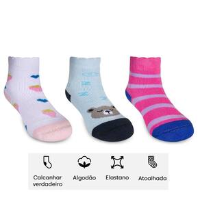 Kit 3 pares Meias Cano Curto Bebê Hoahi diverso.