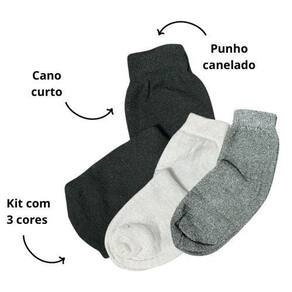 Kit 3 Pares Meias Lisas em Algodão Cano Curto Baixo Durável Cor: Tamanho: 37-43 Descrição Kit com 3 pares de Meias Lisas em Algodão e Poliamida ideal para usar com tenis no dia a dia ou em atividades esportivas como academia, fisioterapia, caminhadas, etc. Tamanho: 37 ao 43 Cores: Preto, Branco, Mescla 1 de cada cor Composição: 70% Algodão 27% Poliamida 02% Elastano 01% Elastodieno. Marca: Não Informado