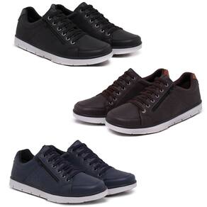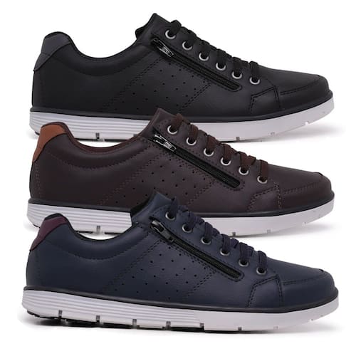 Kit 3 Pares Sapatenis Masculino Ziper Cadarço Confortável - 41 - Azul Marinho