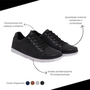 Desenvolvido para alinhar o conforto e praticidade. Seu ajuste que gera o encaixe perfeito aos pés e seu fechamento facilita o calçar. Desenvolvido para o homem moderno com modelos e cores que combinam com as principais ocasiões. O modelo perfeito para alinhar conforto e estilo para o dia a dia no trabalho. Feito com material sintético de ótima qualidade e palmilha confortável.