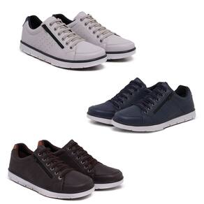 Kit 3 Pares Sapatenis Masculino Ziper Cadarço Confortável - 43 - Branco