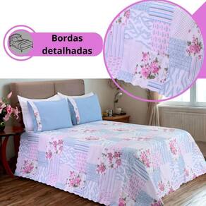 Kit 3 Pçs Cobre Leito Colcha Casal Queen Bel Estilo Conforto