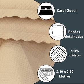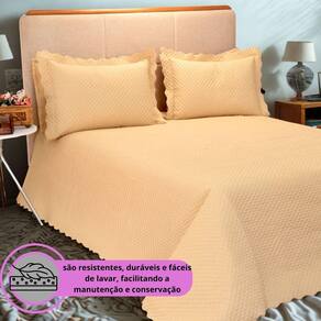 Kit 3 Pçs Cobre Leito Queen Classic Casal com Porta Travesseiros Variação: Avelã Olá Se você procura conforto, elegância e praticidade para transformar o seu quarto, temos a escolha perfeita para você. Apresentamos o Kit 3 Peças Cobre Leito Casal Queen Classic, um conjunto pensado para quem valoriza qualidade, bem-estar e beleza na hora de descansar. Quantas vezes você já sentiu que seu quarto precisava de um toque de aconchego ou que sua roupa de cama não refletia a sofisticação que você deseja O Cobre Leito Classic é a solução prática e acessível para renovar sua decoração sem abrir mão do conforto. Por que nossos clientes escolhem o Kit Classic Adorei a qualidade, deixou meu quarto muito mais elegante. - Juliana S. É leve, fácil de lavar e seca rápido. Perfeito para o dia a dia. - Renato F. Ótimo custo-benefício, material resistente e bonito. - Carla A. Especificações do Produto: 01 Cobre Leito 2,40 m x 2,50 m 02 Porta-travesseiros 70 cm x 50 cm Material: Microfibra 100% poliéster superior Manta 100% poliéster Inferior 100% polipropileno Fácil manutenção: resistente, lavável e de secagem rápida Visual clássico e sofisticado : 3 meses contra defeitos de fabricação, proporcionando segurança e confiança para sua compra. Garanta já o seu e tenha noites de sono muito mais confortáveis Agradecemos a sua visita à Atual Ecommerce Marca: Não Informado Ean: 7897656325747
