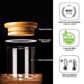 Além de ser resistente a temperaturas variadas e contar com um design sofisticado, os potes de vidro não acumulam cheiro, conservando com maior qualidade os seus alimentos armazenados.