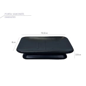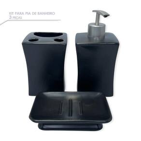 -material: Porcelana e PVC -dimensões: -porta Sabonete Líquido: 7,5cm largura x 7,5cm profundidade x 16cm altura -porta Escovas: 7,5cm largura x 7,5cm profundidade x 11cm altura -saboneteira: 12,2cm largura x 8cm profundidade x 2,5cm altura -cor: Preto -3 Peças no Kit
