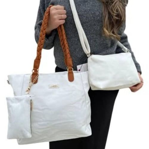 Kit 3 Peças Bolsa Feminina Branca Grande Média + Necessarie ===================================== Com alças trançadas caramelo design moderno e acabamento sofisticado, ela é ideal para o dia a dia, viagens ou compromissos especiais. O kit é composto por uma bolsa grande com alças trançadas e zíper frontal, perfeita para carregar tudo com estilo e organização; uma bolsa média transversal com alça ajustável, ideal para passeios e uso diário; e uma necessaire com zíper, ideal para maquiagem, documentos ou pequenos itens. A bolsa grande pode ser Utilizado no ombro, enquanto a transversal oferece praticidade no uso cruzado, e o acabamento em dourado complementa o visual refinado do conjunto. Funcional, estiloso e versátil, ideal para quem busca beleza e organização no dia a dia ou deseja presentear com bom gosto ===================================== Contém: 01 Bolsa Grande 01 Bolsa Média 01 Necessaire Especificações: - Material: material sintético - Medida Bolsa Grande: 11cm x 30cm x 27cm - Medida Bolsa Média: 28cm x 18cm - Medida Necessaire: 17cm x 10cm - Peso: 1100 gramas - Cor: Branco ===================================== Devido à diferença entre monitores e iluminação diferentes, pode haver variação na tonalidade apresentada no anúncio. Medidas muito aproximadas. Marca: Não Informado