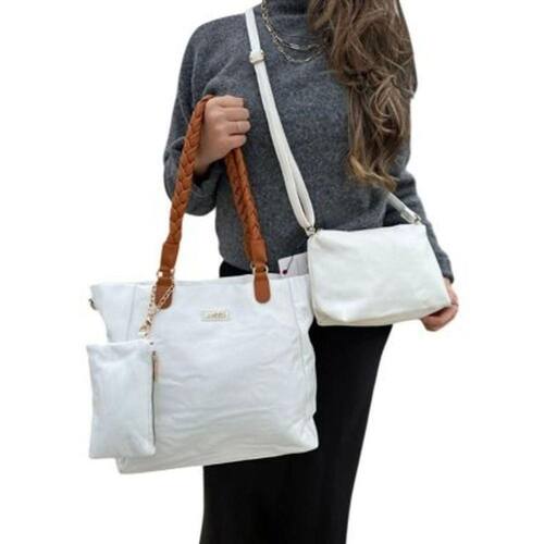 Kit 3 Peças Bolsa Feminina Com Alça Trançada Lyssa Branco - Branco - M