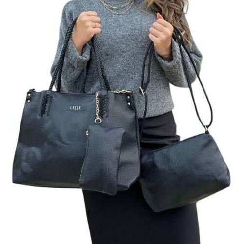 Kit 3 Peças Bolsa Feminina Preta Grande e Média + Necessarie ===================================== É a escolha perfeita para quem busca sofisticação, funcionalidade e praticidade no dia a dia. Composto por uma bolsa grande estilo tote com alças duplas trançadas, uma bolsa média transversal com alça ajustável e uma necessaire compacta com zíper, o conjunto oferece versatilidade para diferentes ocasiões. A bolsa grande apresenta detalhes elegantes como aplicação trançada na parte frontal e corrente decorativa dourada com a necessaire acoplada, conferindo charme e modernidade ao visual. Atemporal ela combina facilmente com diferentes looks. Ideal para o trabalho, compromissos sociais ou uso casual, este kit une beleza, organização e praticidade em um só produto ===================================== Contém: 01 Bolsa Grande 01 Bolsa Média 01 Necessaire Especificações: - Material: material sintético - Medida Bolsa Grande: 11cm x 30cm x 43cm - Medida Bolsa Média: 28cm x 17cm - Medida Necessaire: 18cm x 10cm - Peso: 1100 gramas - Cor: Preto ===================================== Devido à diferença entre monitores e iluminação diferentes, pode haver variação na tonalidade apresentada no anúncio. Medidas muito aproximadas. Marca: Não Informado Ean: 6013400070935