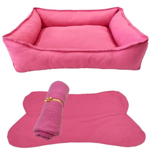 Kit 3 peças cama para pet retangular m tactel com zíper com manta soft 90 x 75 e tapete Cor: rosa Seja bem vindo a loja oficial da dog cat store.