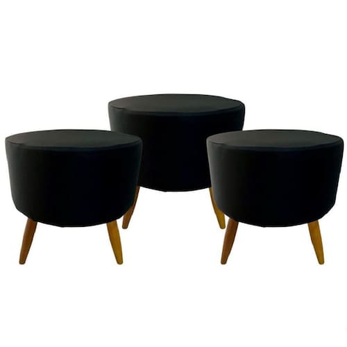Kit 3 Peças Capa para Puff Redondo Pé Palito Malha com Elástico Cor: Preto Mude a decoração da sua casa sempre que quiser, de mandeira fácil e rápida, com as capas para puff. São várias opções de cores e estampas pra você combinar como preferir.