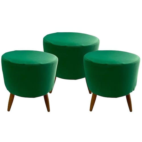 Kit 3 Peças Capa para Puff Redondo Pé Palito Malha com Elástico Cor: Verde Mude a decoração da sua casa sempre que quiser, de mandeira fácil e rápida, com as capas para puff. São várias opções de cores e estampas pra você combinar como preferir.