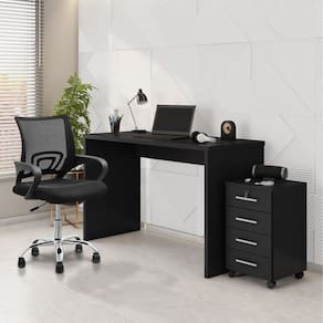 A cadeira tem estrutura em poliuretano de altíssima qualidade, que proporciona muito mais resistência, mesmo com o passar dos anos. O acabamento em verniz deixa o móvel mais bonito e dá mais destaque a decoração de toda a casa. Essa cadeira tem design versátil, assento confortável e vem com kit de montagem, para tudo ficar mais rápido e prático. Ela suporta até 120 kg de peso máximo, que dá mais tranquilidade ao sentar e t Acabamento: Pintura UV Altura do Conjunto: 91 cm Ambiente: Escritório Ambiente Principal: Escritório Cor: Preto Informação Complementar: 1x Escrivaninha Gávea Office 127cm Preto Black Largura: 127 cm Altura: 75 cm Peso: 25 kg Profundidade: 53 cm Necessita Montagem: Sim