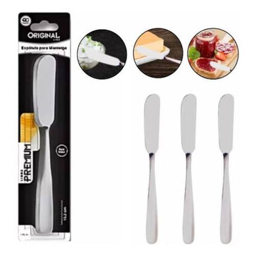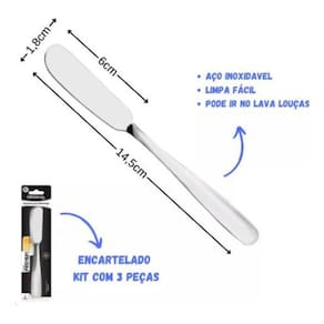 Com um comprimento de 14,5cm, estas espátulas são ideais para espalhar diversos alimentos, molho com facilidade e precisão - Feitas de aço inoxidável, estas espátulas são duráveis e resistentes à corrosão, garantindo que você possa usá-las por muito tempo. O design premium do modelo adiciona um toque de elegância à sua cozinha, tornando estas espátulas não apenas úteis, mas também esteticamente agradáveis. Cada embalagem vem com 03 unidades, permitindo que você tenha sempre uma espátula à mão quando precisar. Seja para preparar o café da manhã, um lanche rápido ou um jantar sofisticado, estas espátulas são a ferramenta perfeita para ajudá-lo a preparar suas refeições. CUIDADOS: Para manter seus talheres sempre brilhando, lave com esponja macia, sabão ou detergente neutro. Produtos abrasivos como palha de aço podem riscar e prejudicar o brilho Seque imediatamente para evitar manchas Recomenda-se o uso de água quente para melhorar o brilho Não guarde em local úmido, a umidade pode provocar manchas.