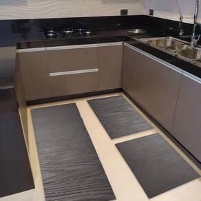 Design Moderno e Toque Agradável para sua Rotina Com visual discreto e acabamento bem definido, as peças se integram facilmente à decoração da cozinha, oferecendo um toque a mais de elegância ao ambiente. O material emborrachado também ajuda a absorver o impacto dos pés, tornando o uso diário mais confortável.