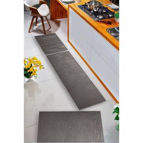 Kit 3 Peças Jogo Cozinha Passadeira Emborrachada Não Derrapa Cinza