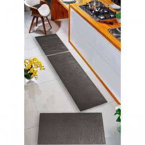 Kit 3 Peças Jogo Cozinha Passadeira Emborrachada Não Derrapa Grafite