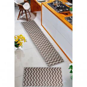 Kit 3 Peças Jogo Cozinha Passadeira Emborrachada Não Derrapa Zigzag Cinza Marrom