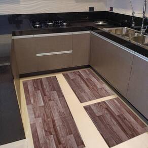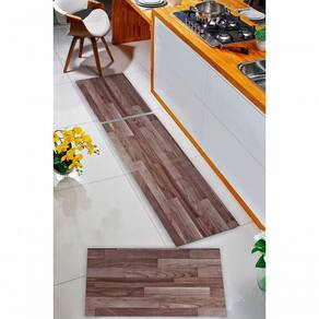 Kit 3 Peças Jogo Cozinha Passadeira Manta Vinilico Laminado Madeira Marrom Escuro