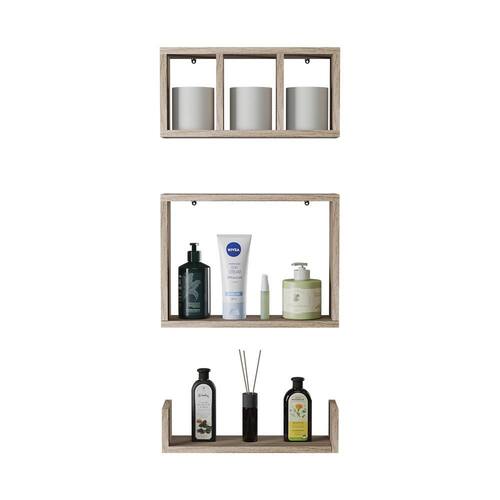 Kit é composto por: 01 Nicho com divisórias, 01 Nicho retangular e 01 prateleira formato U.