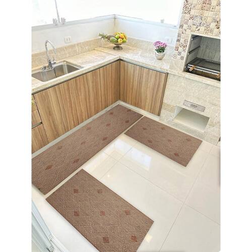 Kit 3 Peças Ps Jogo Tapete Cozinha Largo 0,66 Antiderrapante
