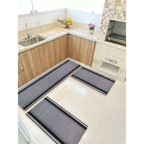 Kit 3 Peças Ps Jogo Tapete Cozinha Largo 0,66 Antiderrapante