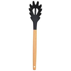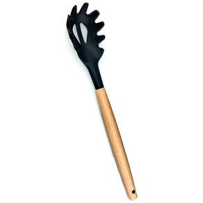 Kit 3 Pegadores De Macarrão Silicone Cabo Madeira 32Cm Preto