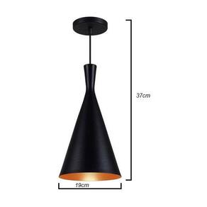 O kit inclui 3 pendentes Funil, cada um com 19 cm de diâmetro e 37 cm de altura. Além disso, conta com 3 canoplas de fixação com 11 cm de diâmetro e 1,5 cm de altura. Cada luminária possui 1 metro de cabo regulável com alma, permitindo ajustá-las de acordo com a altura desejada.