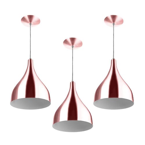 Kit 3 Pendente Milão Pequena Gold Rose Sala Cozinha Quarto