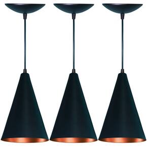 Kit 3 Lustres Pendente Cone em Alumínio Preto Fosco e Cobre