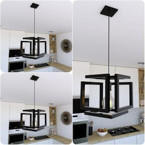 O formato do pendente proporciona uma iluminação suave e agradável, sua canopla é quadrada para harmonização da peça.