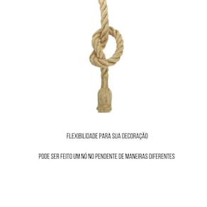 Kit 3 Pendentes Lustre Luminária Vintage Corda Sisal Retro Rústico Com Soquete Bocal E27 Canopla De Metal Fio Para Teto O Corda Pendente Retro Rústico, traz Estilo, beleza e aconchego para o ambiente. Ideal para restaurantes, bares, salas de jantares, cozinhas, armazéns ou onde preferir.Sugerimos a utilização de lâmpadas modelo Vintage de LED ou Filamento de carbono, com temperatura de cor amarela para deixar seu ambiente mais elegante. Características do produto Materiais do produto:- Soquete: Modelo E27 4A 250V- Canopla e base para fixação no teto: Metal- Corda: Sisal Especificação do produto: - Tipo de Fiação: Fio PP 2 vias - Voltagem: Bivolt - Fácil de Instalar- Cor da corda: Palha- Petência máxima recomendada por pendente: Até 20W- Peso do produto: Aproximadamente 260 gramas cada pendente Medidas do Produto:- As medidas estão ilustradas na foto do anúncio para melhor compreensão Itens inclusos:- 3 Cordas Pendente, com bocal, canopla e parafusos com buchas para instalação Observação: Este produto não acompanha nenhuma lâmpada Marca: Pendente Rústico