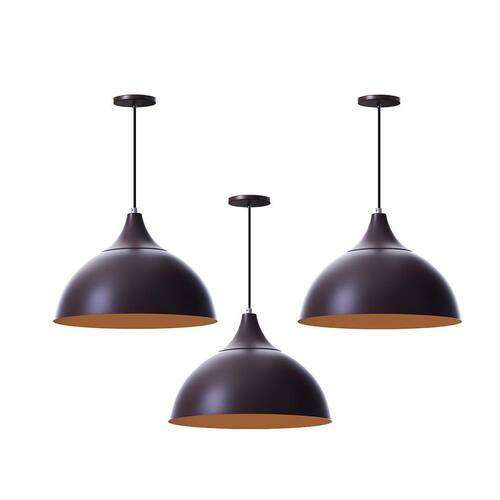 Kit 3 Pendentes Meia Lua Marrom Cobre 30Cm Chapéu Marrom - dimensões: 28x33cm - canopla redonda de 11cm de diâmetro - produto feito em alumínio - 150cm de fio ajustável - pronto para instalação - utilize a lâmpada que desejar - soquete e-27 - de 6 meses contra defeitos de fabricação - produto bivolt - lâmpadas não inclusas neste produto.