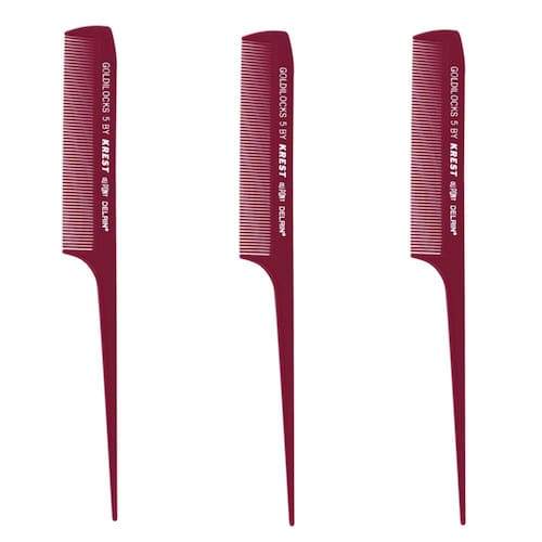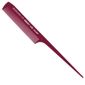 Especificações: Pente de cabo fino mede de 20,32 centímetros (8/12”) Dentes superfinos Cor bordô Material: resina Dupont Delrin Marca: Krest Validade: Indeterminada Resistente ao calor Ean: 7898310144421