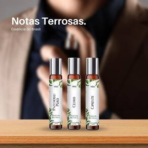 Kit 3 Perfumes Roll On 10ml - Notas Terrosas para Ele kit 3 Perfumes Roll On 10ml - Notas Terrosas para Ele Essência do Brasil Enraíze-se no aroma da terra e abrace a natureza com o Kit de Perfumes Notas Terrosas da Essência do Brasil. Em frascos compactos de 10ml, sentimos o coração pulsante da nossa terra em cada gota. Notas que Tocam a Alma Perfume Masculino Patchouli Puro Uma essência rica e profunda, o Patchouli transporta para as florestas úmidas, celebrando sua virilidade e essência inabalável. Perfume Masculino Cedro Respire a majestade das árvores centenárias com notas amadeiradas que falam de força, estabilidade e caráter. Perfume Masculino Cipreste Um aroma fresco e ao mesmo tempo terroso, o Cipreste reflete a elegância atemporal e o mistério dos bosques antigos. Experiência Envolvente Cada perfume é meticulosamente embalado ao som de música clássica, prometendo uma experiência de unboxing que canta e dança ao ritmo da natureza. Praticidade e Elegância O roll-on de 10ml é mais que um frasco, é sua assinatura olfativa sempre à mão. Deslize diretamente na pele, principalmente no pulso e pescoço, e sinta a magia acontecer. A portabilidade encontra a paixão em cada frasco. Por que escolher Essência do Brasil: - Matérias-primas autênticas que contam histórias.- Praticidade do design roll-on para o homem moderno.- Composições que unem tradição e inovação.- Compromisso com a sustentabilidade e amor pelo Brasil. Ocasiões Perfeitas Seja em encontros ao ar livre, viagens de aventura, momentos introspectivos ou eventos sociais sofisticados, estas fragrâncias adaptam-se, amplificando sua presença natural. A natureza sussurra, o homem responde. E essa conversa é nossa essência. Mergulhe nas raízes da natureza e destaque-se com notas que ecoam nossa terra. Marca: Essência Do Brasil