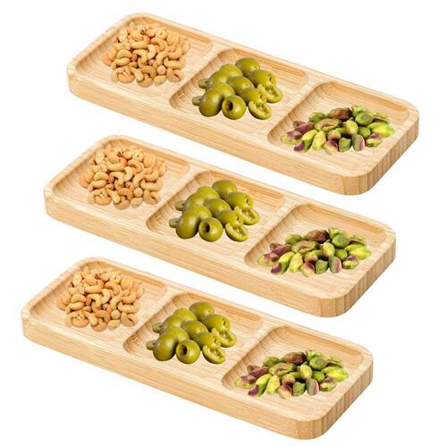 Kit 3 Petisqueira Retangular Bambu Tira Gosto Amendoim Doce Kit com 3 Petisqueira Retangular em Bambu 3 Compartumentos Petisqueira de Bambu Retangular de 25x10x1,5cm Com 3 Divisórias