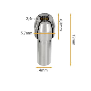 Kit com 3 Pinças 2.4mm para Micro Retíficas Mandril em Aço Vonder - Marca: Vonder - Kit exclusivo com 3 pinças - Diâmetro do furo: 2,4mm 3/32 Polegadas - Pega haste e acessórios de 2,1 a 2,5mm - Indicada para a fixação de acessórios em micro retíficas - Atenção as dimensões apresentadas abaixo e nas fotos para verificar se é compatível com a sua micro retífica - Diâmetro da Base: 4mm - Diâmetro da cabeça: 5,7mm - Comprimento da cabeça: 6,3mm - Comprimento total: 19mm 3/4 Pol. - Hastes de metal duráveis para uso duradouro - Material: Aço - Rotação máxima: 35.000rpm - : 90 dias Marca: Não Informado Ean: 7734625995160