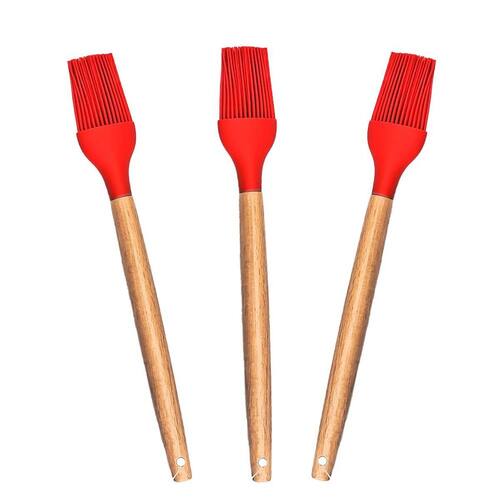 Kit 3 pincéis culinários silicone cabo madeira 32cm vermelho Característica do produto - Para você dar um acabamento especial às suas maravilhosas receitas e passar gema de ovo em pães e roscas para dourar, espalhar manteiga e óleo de forma mais rápida, uniforme e econômica, você vai precisar de um pincel em silicone para facilitar sua vida. Este pincel culinário além de prático e resistente, é fácil de lavar. Produzido em silicone de alta qualidade ele não solta o fio e reduz a gordura a ser utilizada pela metade. faça sua coleção agora mesmo pincel de cozinha silicone com cabo de madeira antiaderente cozinha churrasco resistente a 240c - 32cm - vermelho - informações adicionais - Dimensões aproximadas do produto: 32cm Quantidade: 3 Composição: silicone e madeira