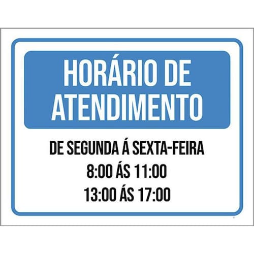 Kit 3 Placa Horário Atendimento Segunda Sexta 13 17 36x46 Placas de sinalizaço fabricadas com poliestireno de alto impacto PSAI de 2mm e impressão ultravioleta.