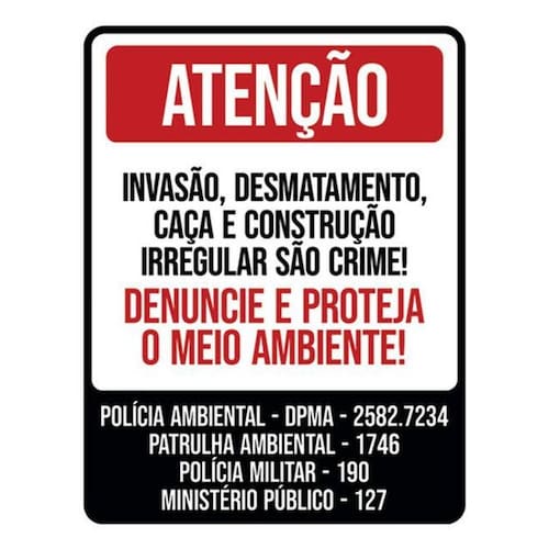 Kit 3 Placa Invasão Desmatamento Caça Denuncie 36x46 Placas de sinalizaço fabricadas com poliestireno de alto impacto PSAI de 2mm e impressão ultravioleta.