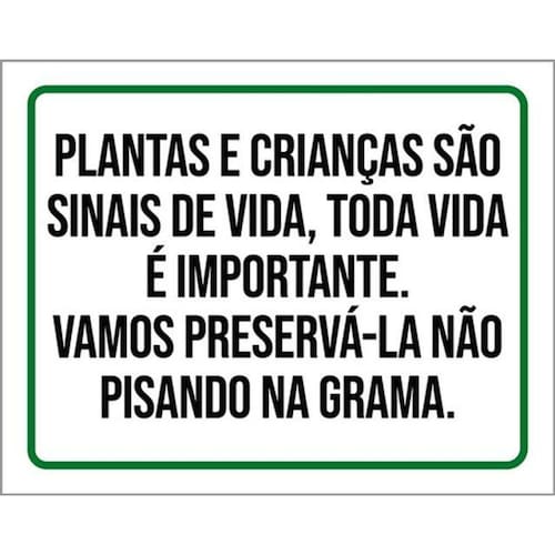 Kit 3 Placa Plantas Crianças Sinais Preservá-la Grama 36x46 Placas de sinalizaço fabricadas com poliestireno de alto impacto PSAI de 2mm e impressão ultravioleta.