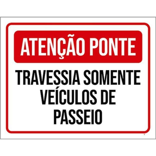Kit 3 Placa Ponte Travessia Somente Veículos Passeio 36x46 Placas de sinalizaço fabricadas com poliestireno de alto impacto PSAI de 2mm e impressão ultravioleta.