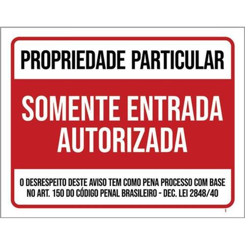 Kit 3 Placa Proprieda Particular Entrada Autorizad 36x46 Placas de sinalizaço fabricadas com poliestireno de alto impacto PSAI de 2mm e impressão ultravioleta.