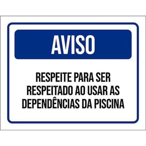 Kit 3 Placa Respeite Respeitado Dependências Piscina 36x46 Placas de sinalizaço fabricadas com poliestireno de alto impacto PSAI de 2mm e impressão ultravioleta.